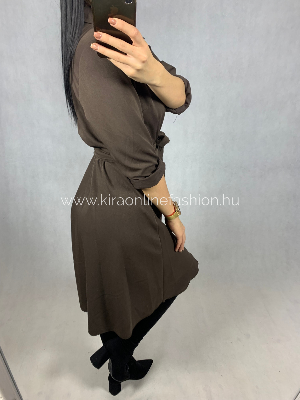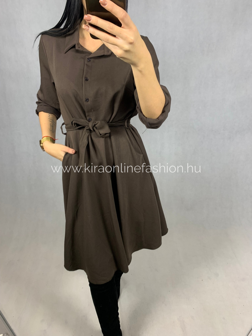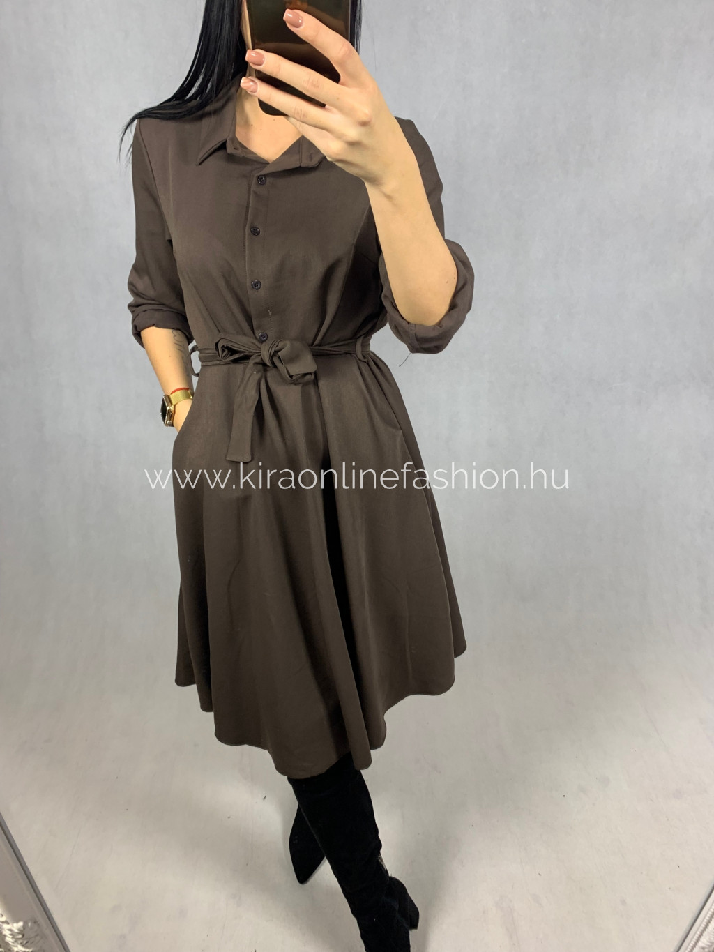 Csokibarna derékban szabott loknis aljú ingruha megkötővel. Méret nélküli.