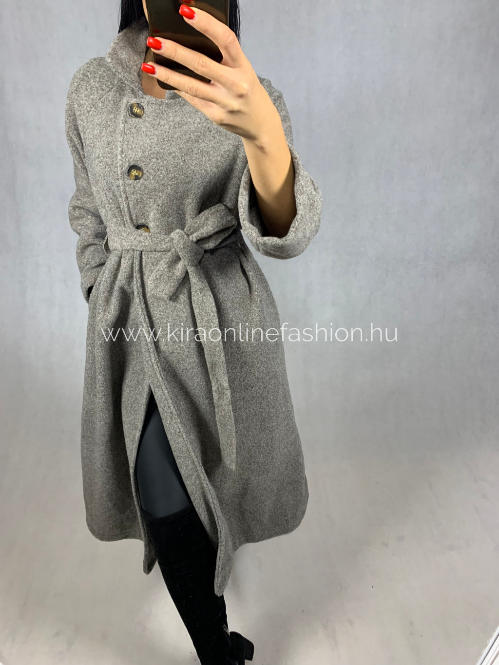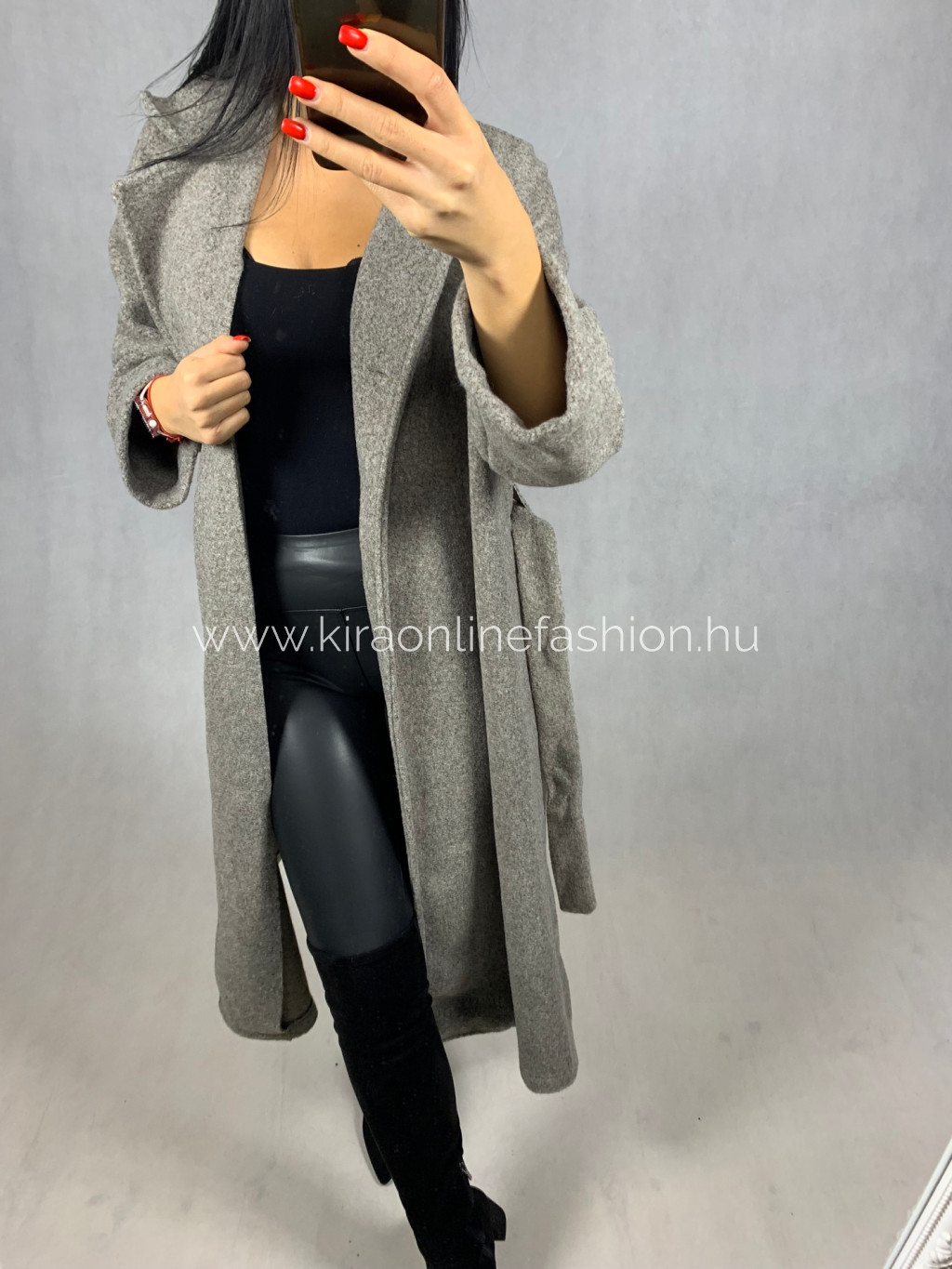 Szürke derekán köthető szövetkabát övvel. Méret nélküli.