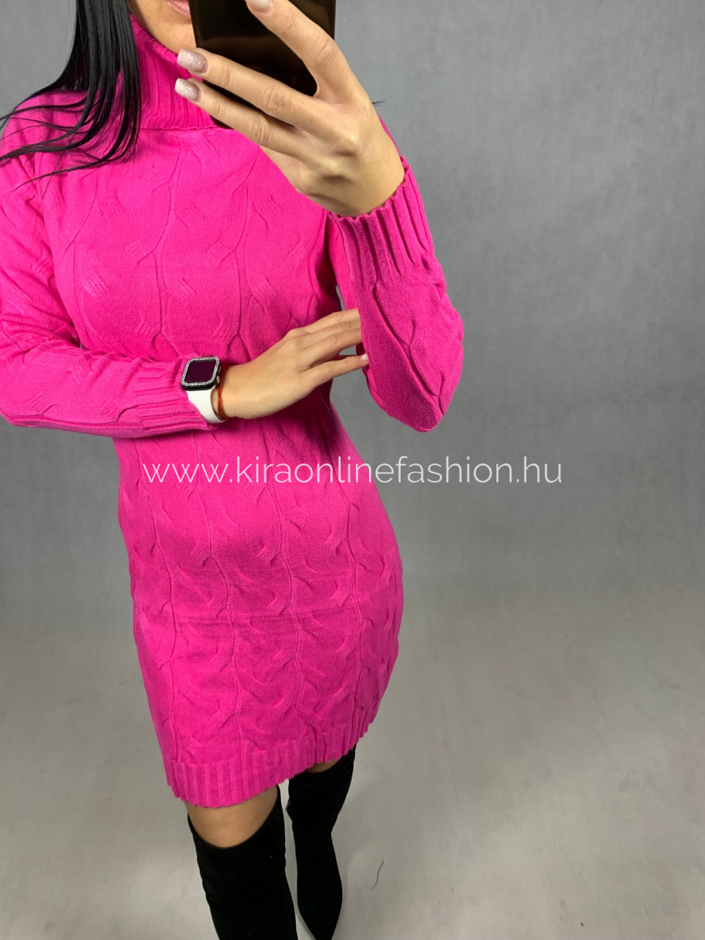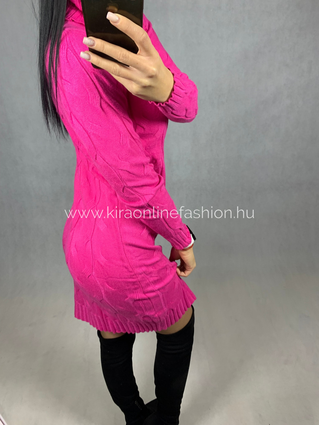 Pink színű kötött garbós ruha, tunika. Méret nélküli.