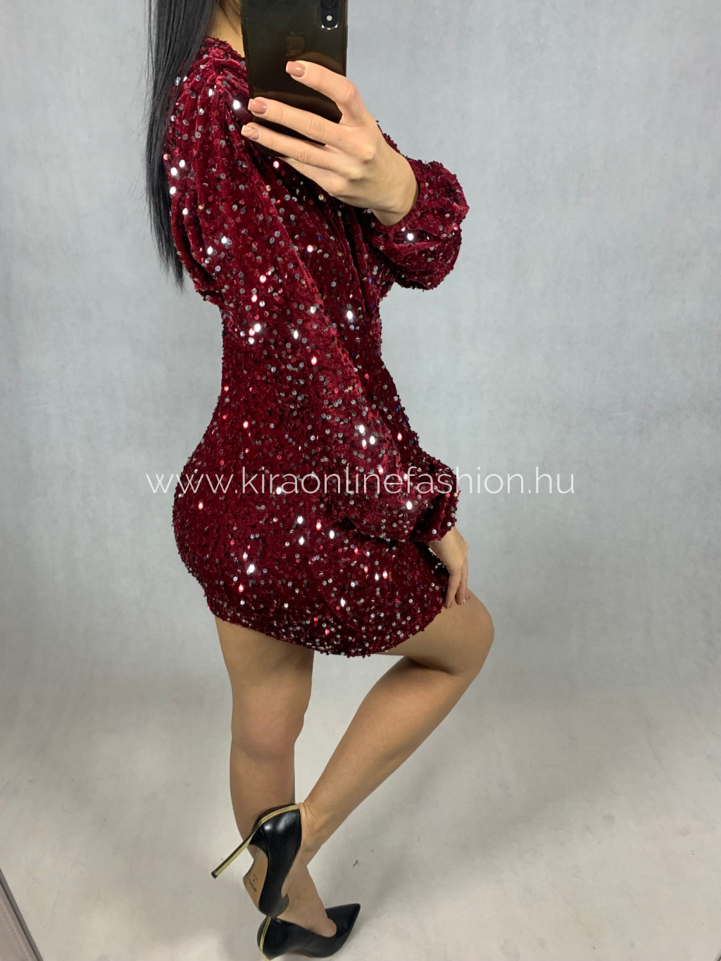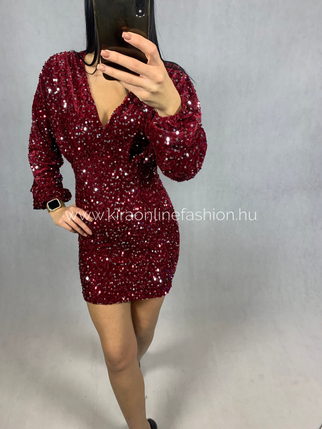 Burgundi csupa flitter derékban gumírozott dekoltált ruha. Méret bélküli. S-M méretre ajánlom.
