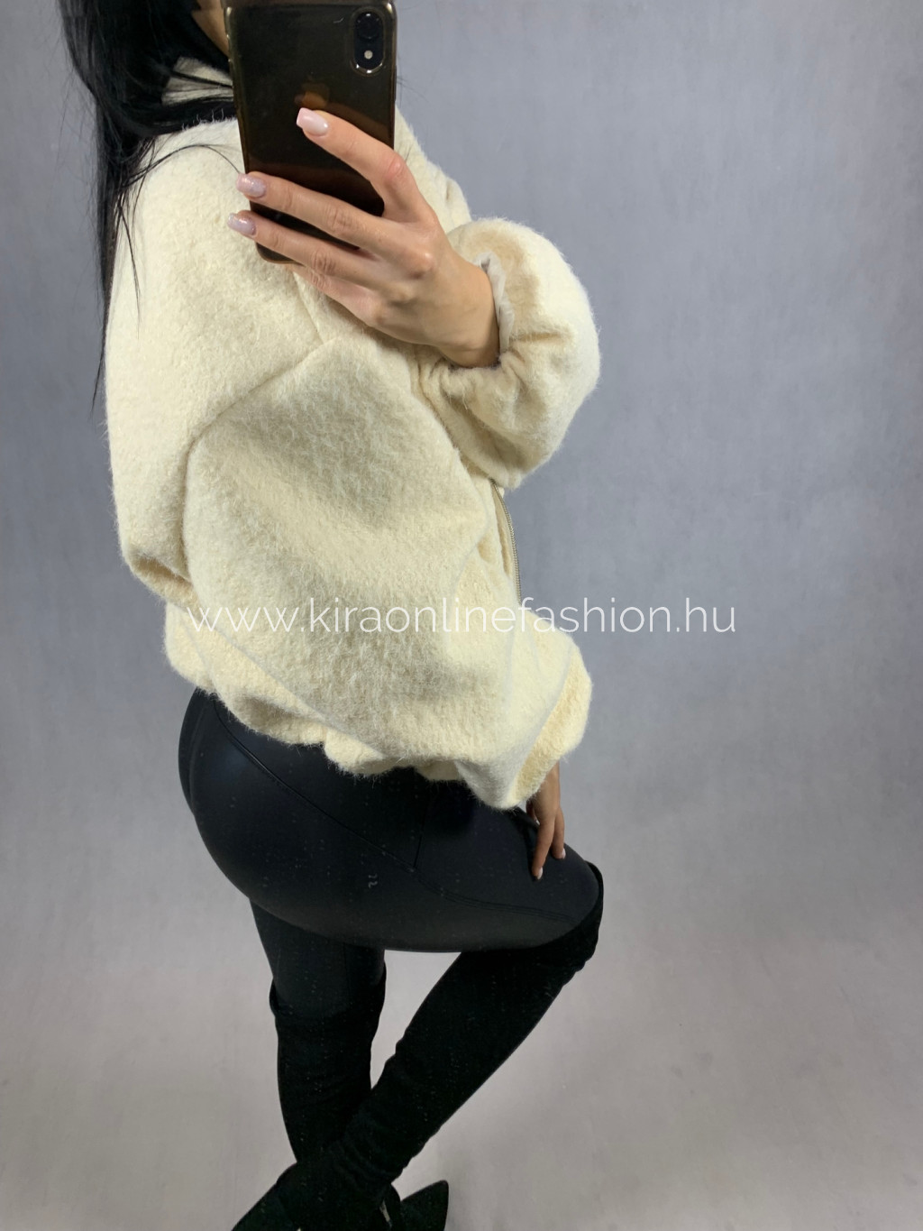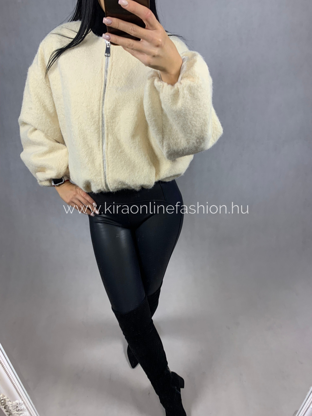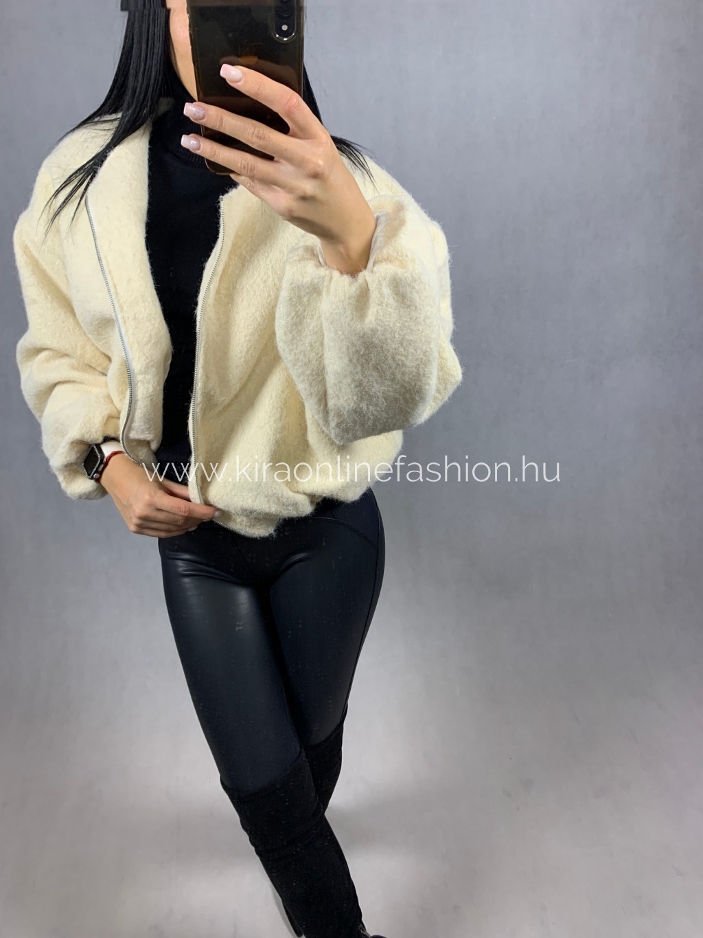 Ekrű színű párár anyagú dereán gumírozott oversize kabátka. Méret nélküli.