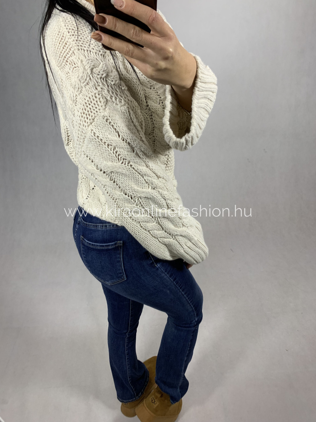 Beige sznű gépi kötött anyagú oversize fazonú pulcsi. Méret nélküli.