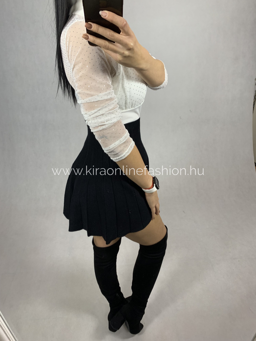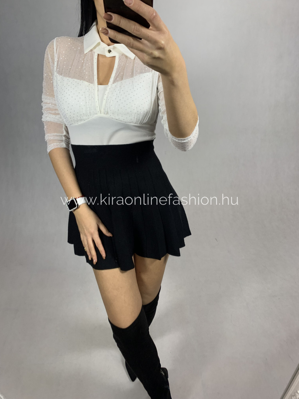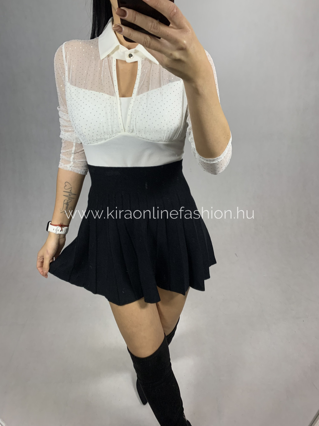 Fehér tüllbetétes strasszos dekoltált felső. Méret nélküli.