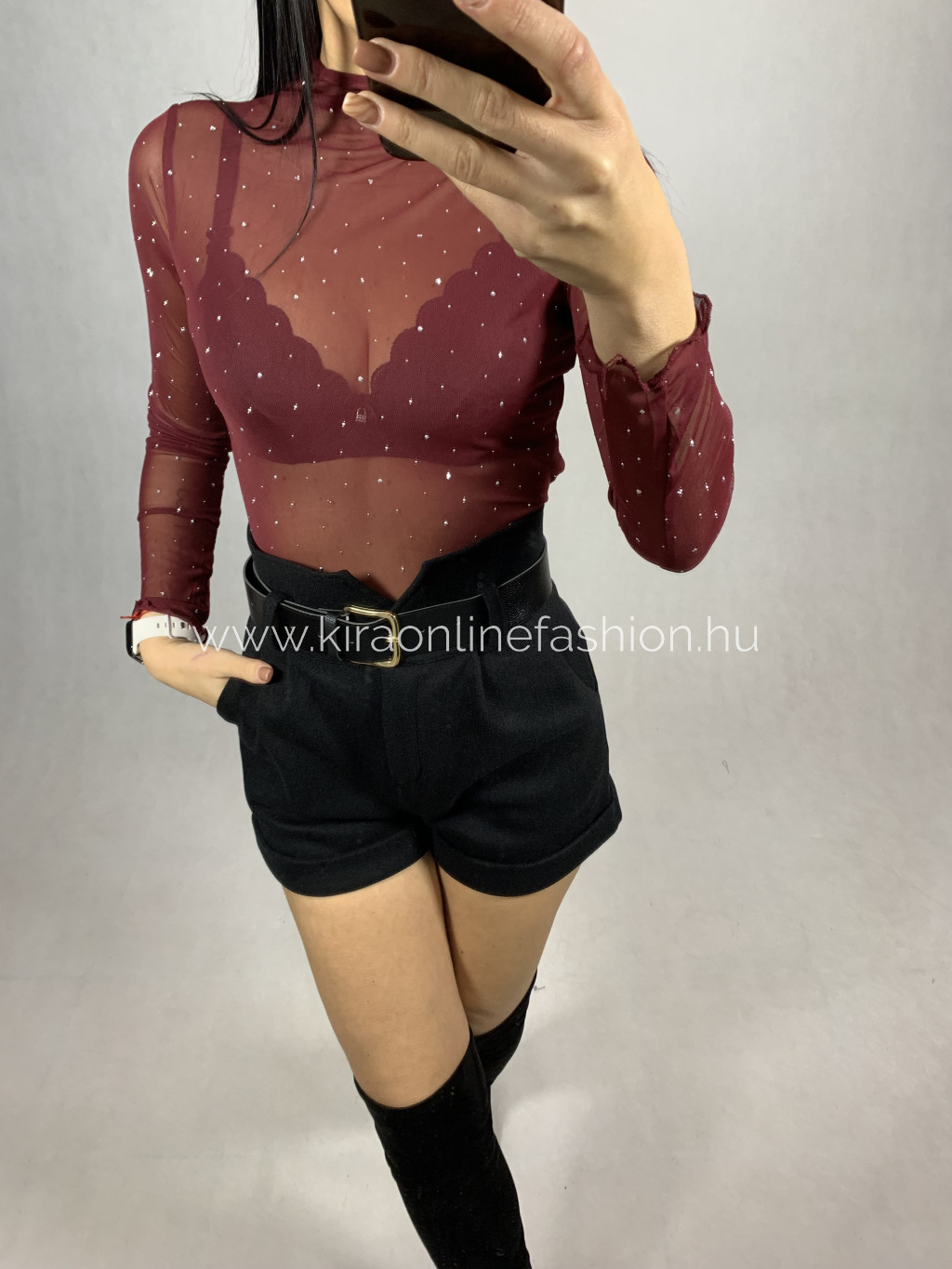 Burgundi tüll anyagú strasszokkal díszített felső. Méret nélküli. S-L méretig ajánlom.