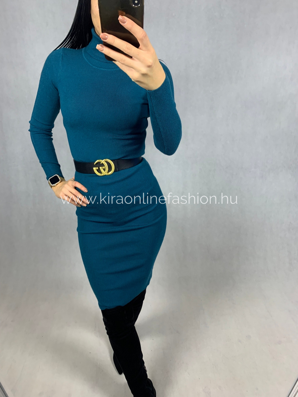 Pávakék finom kötött anyagú garbós midi ruha. Méret nélküli.