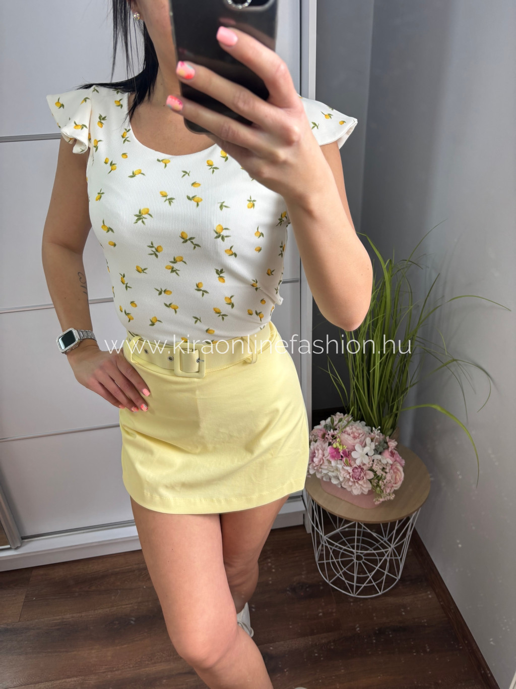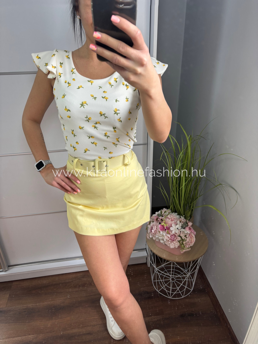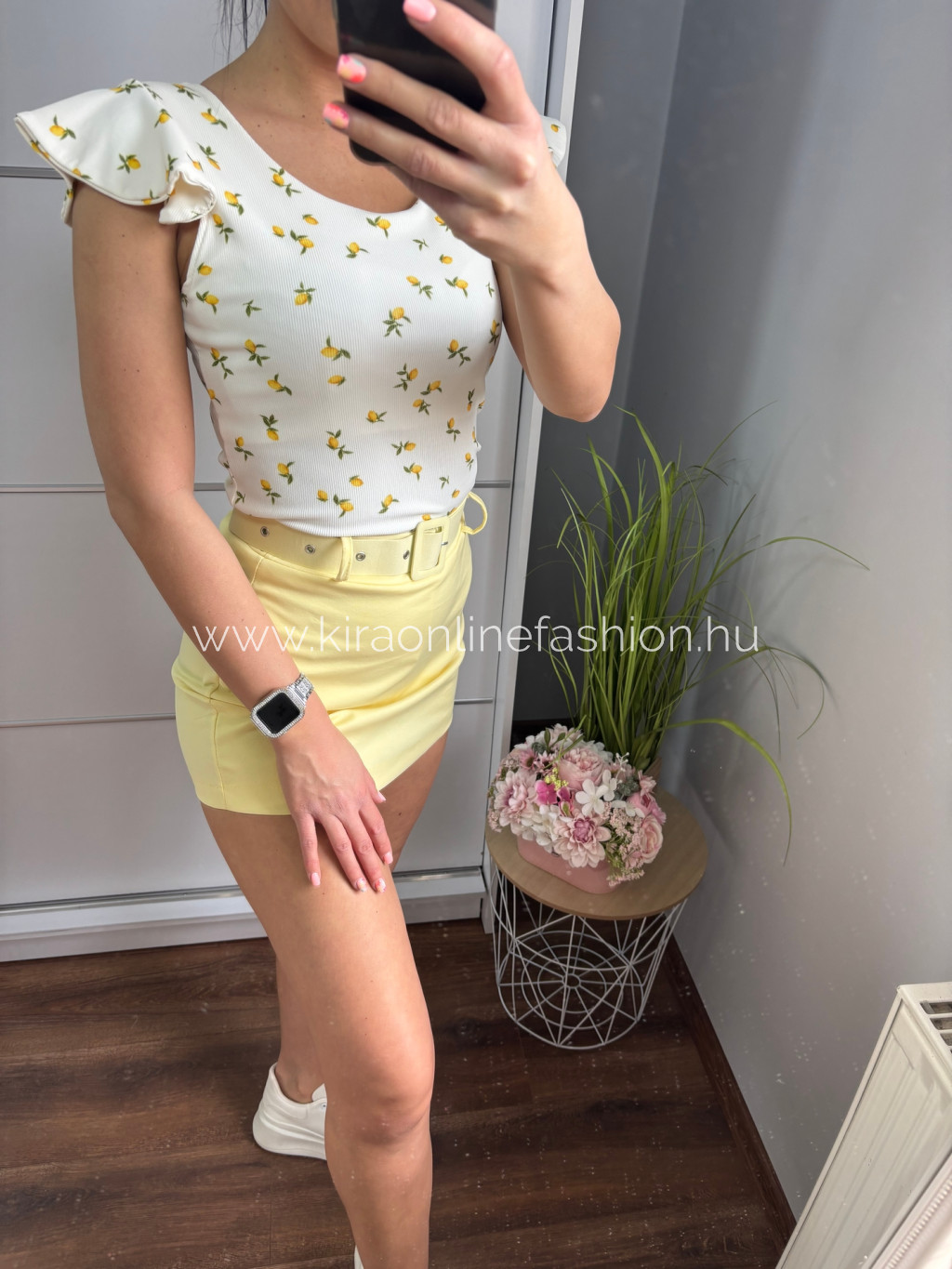 Napsárga velúrhatású szoknyarövidnadrág övvel.Méret nélküli. Méret nélküli.